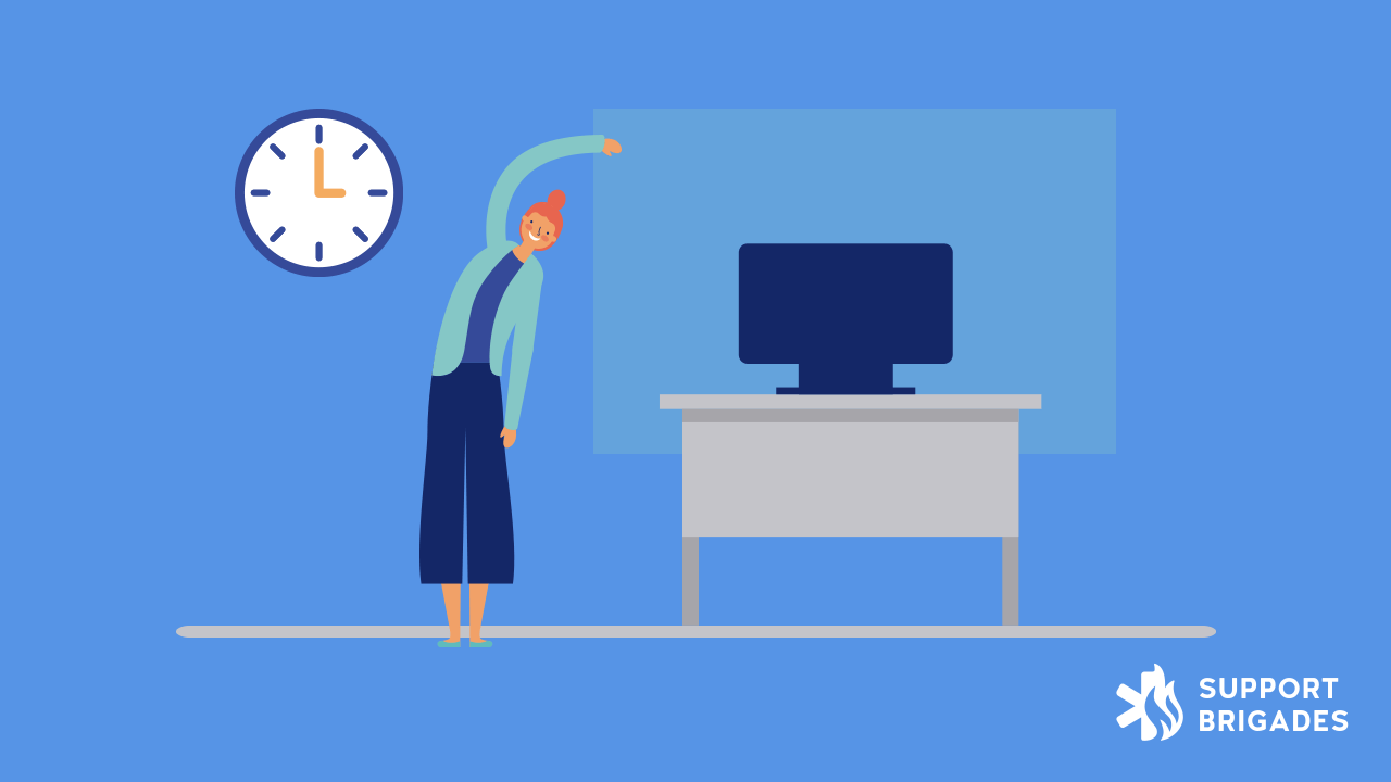 Se recomienda tener 5 minutos de descanso activo por cada dos horas de trabajo, al menos dos veces al día. El enfoque ideal es hacer esto por la mañana o antes del inicio del turno, como calentamiento muscular, para preparar el cuerpo para la jornada laboral, la segunda vez se puede realizar a la mitad o al final del trabajo. día, el propósito es relajar o estirar los músculos cansados.